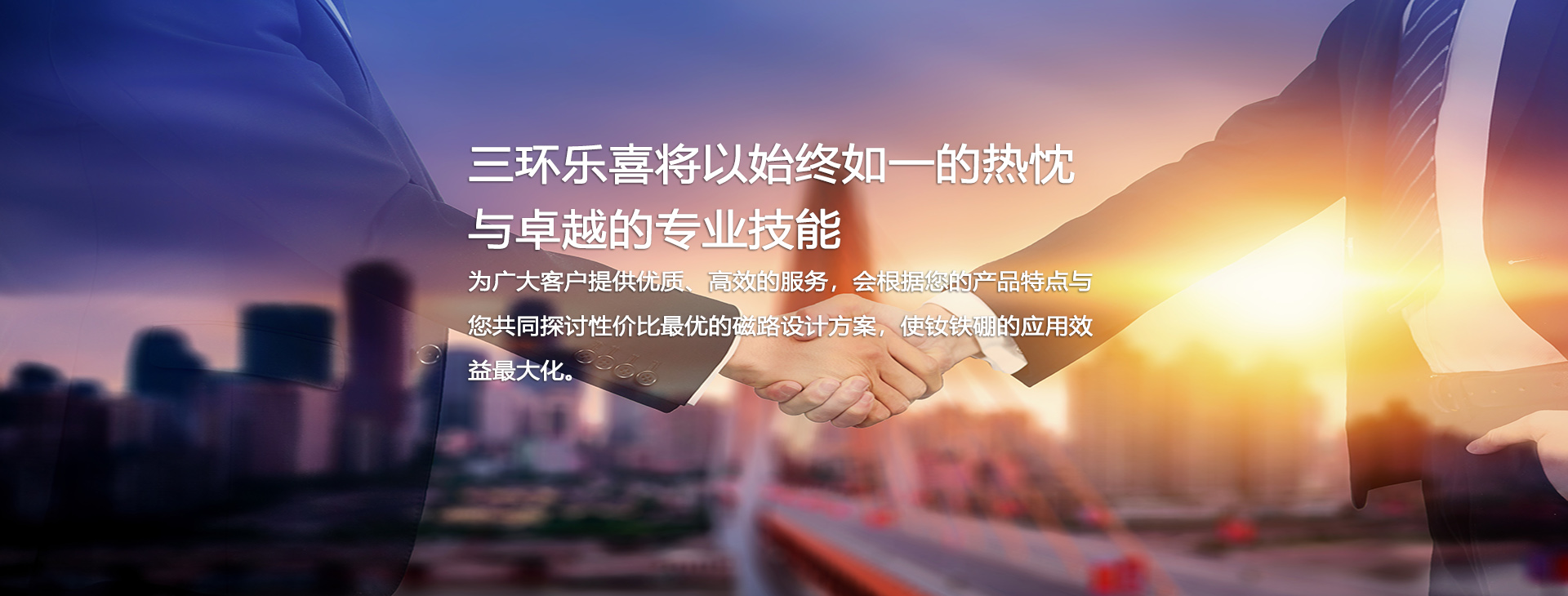 三環樂喜新材料有限公司,成立于1990年,控股股東中科三環(股票代碼:000970)為中國稀土永磁材料產業的代表企業、全球特大的釹鐵硼永磁體制造商之一。自成立以來,公司一直致力于研發、生產、銷售中、高品質燒結釹鐵硼,年生產能力超過6000噸,是中科三環的重要生產基地。
